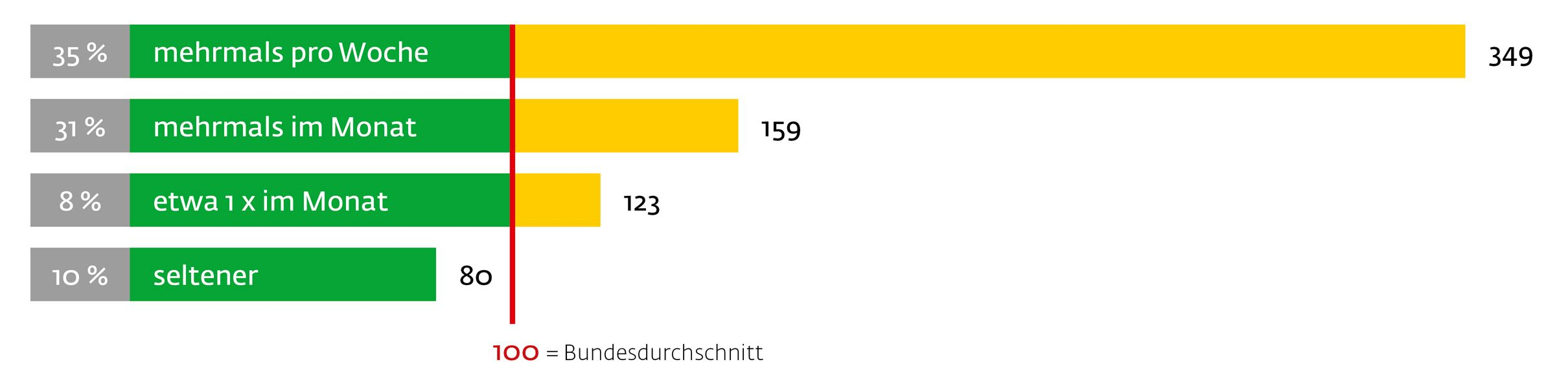 Die Markenbeachtung bei den Kleingärtnern ist besonders ausgeprägt. Hier zeigen wir die Abweichung zum Durchschnitt der Bevölkerung: