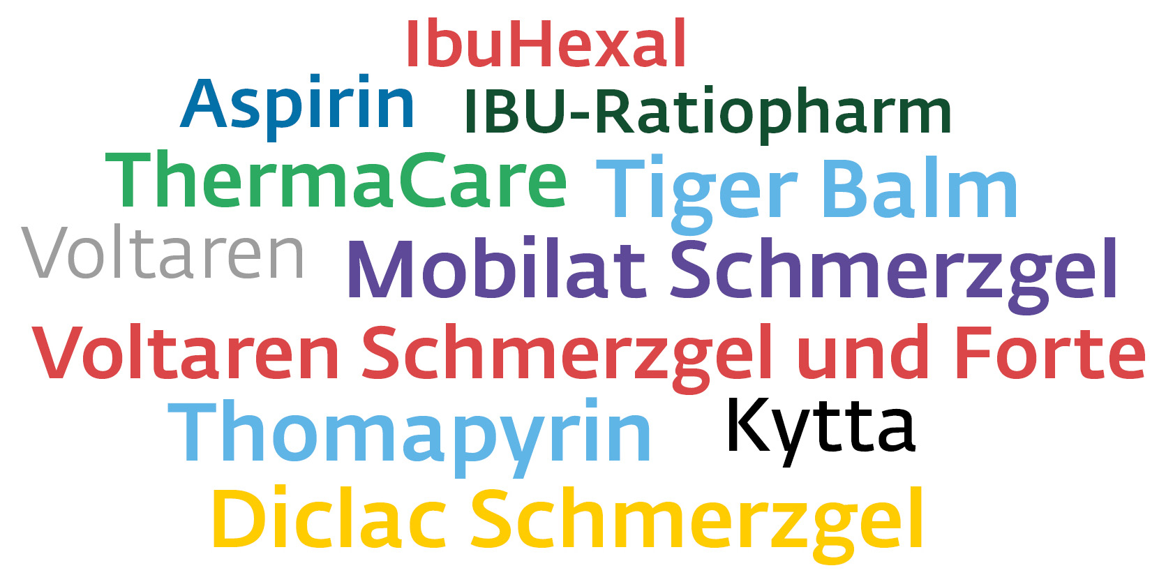 Verwendete Marken im Bereich Schmerztabletten und Salben/Gels: