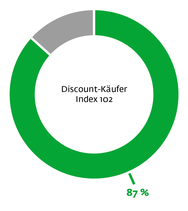 Die Vielfalt zeigt sich auch bei den Kauforten: Im Durchschnitt wählen die Gartenfreunde sechs Adressen dafür aus. Dieses waren  die hauptsächlichen Kauforte für Lebensmittel und Produkte des täglichen Bedarfs in  den letzten drei Monaten. Die Verhältnismäßigkeit zeigt die Abweichung vom Bundesdurchschnitt (Indexwert mindestens 117).